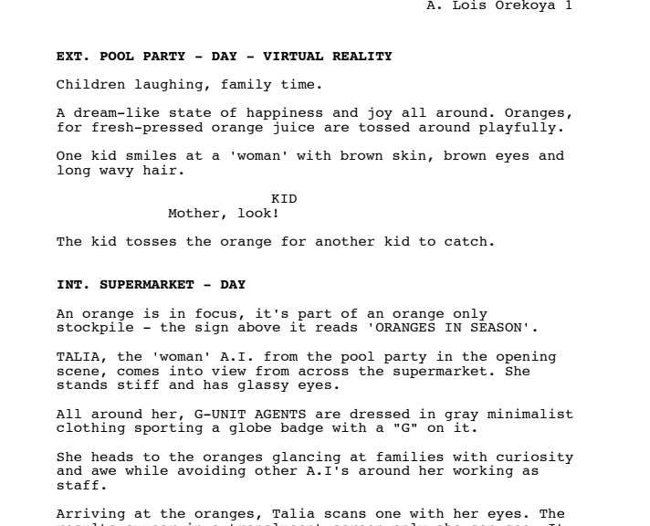 A portion of my first short film script.